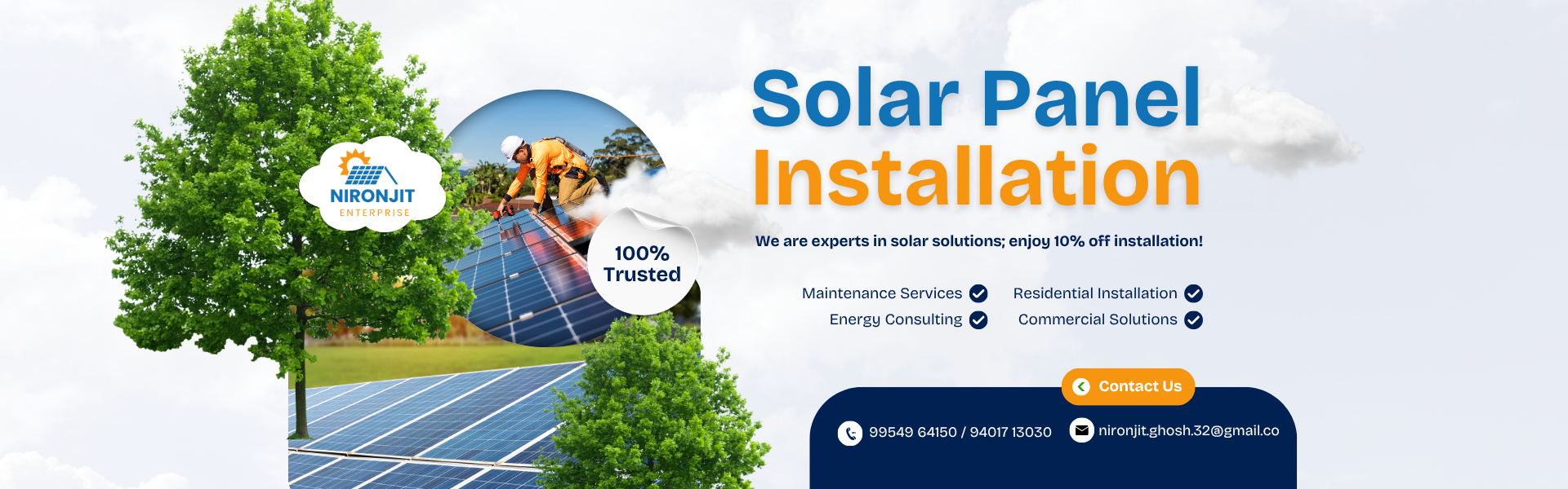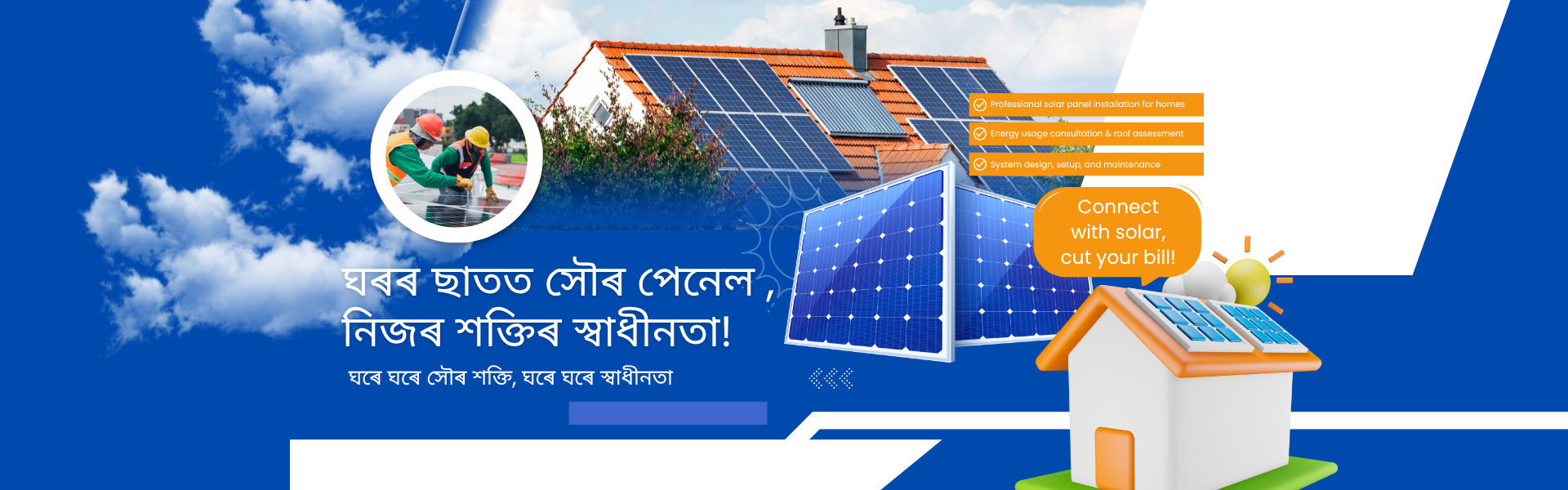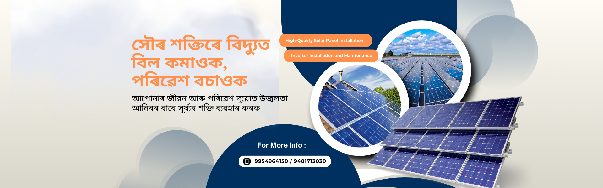 আমি ঘৰুৱা, ব্যৱসায়িক আৰু প্রতিষ্ঠানিক ব্যৱহাৰৰ বাবে উন্নত গুণমানৰ সৌৰ পেনেল প্ৰদান কৰোঁ। পৰিৱেশ সংৰক্ষণৰ লগতে বিদ্যুৎ বিল হ্ৰাস কৰাৰ উদ্দেশ্যে আমি প্ৰতিশ্ৰুতিবদ্ধ।